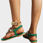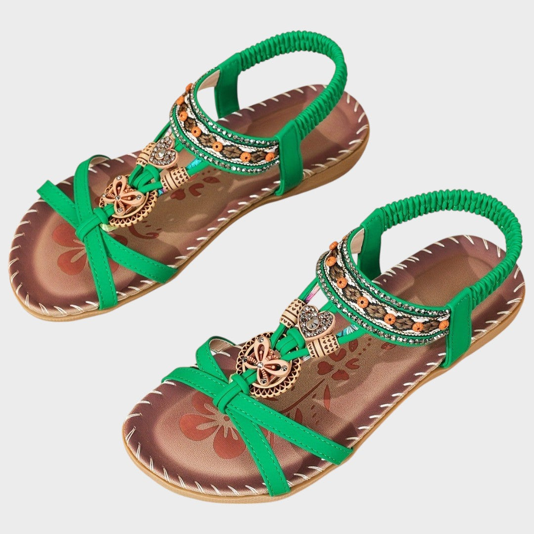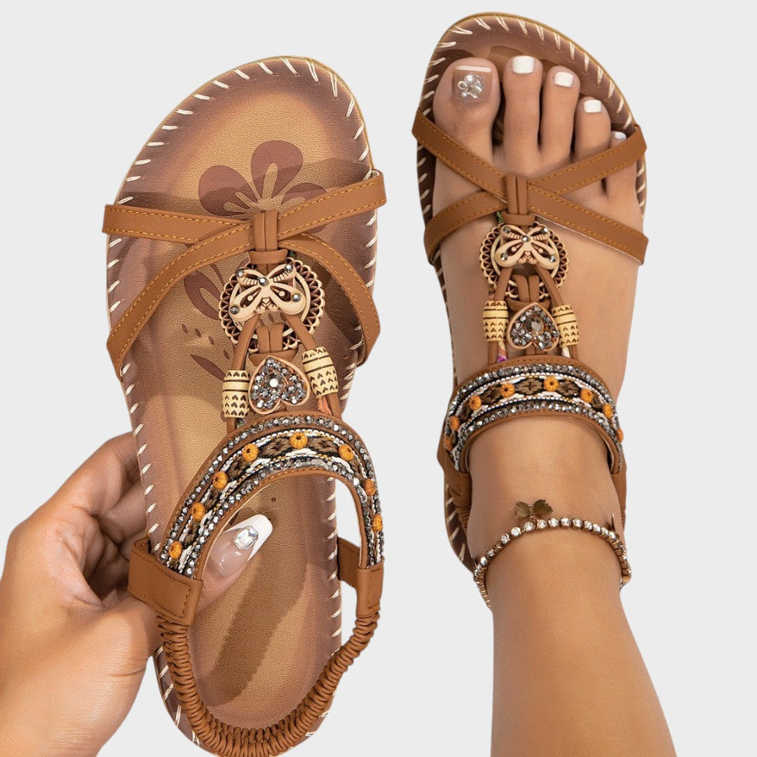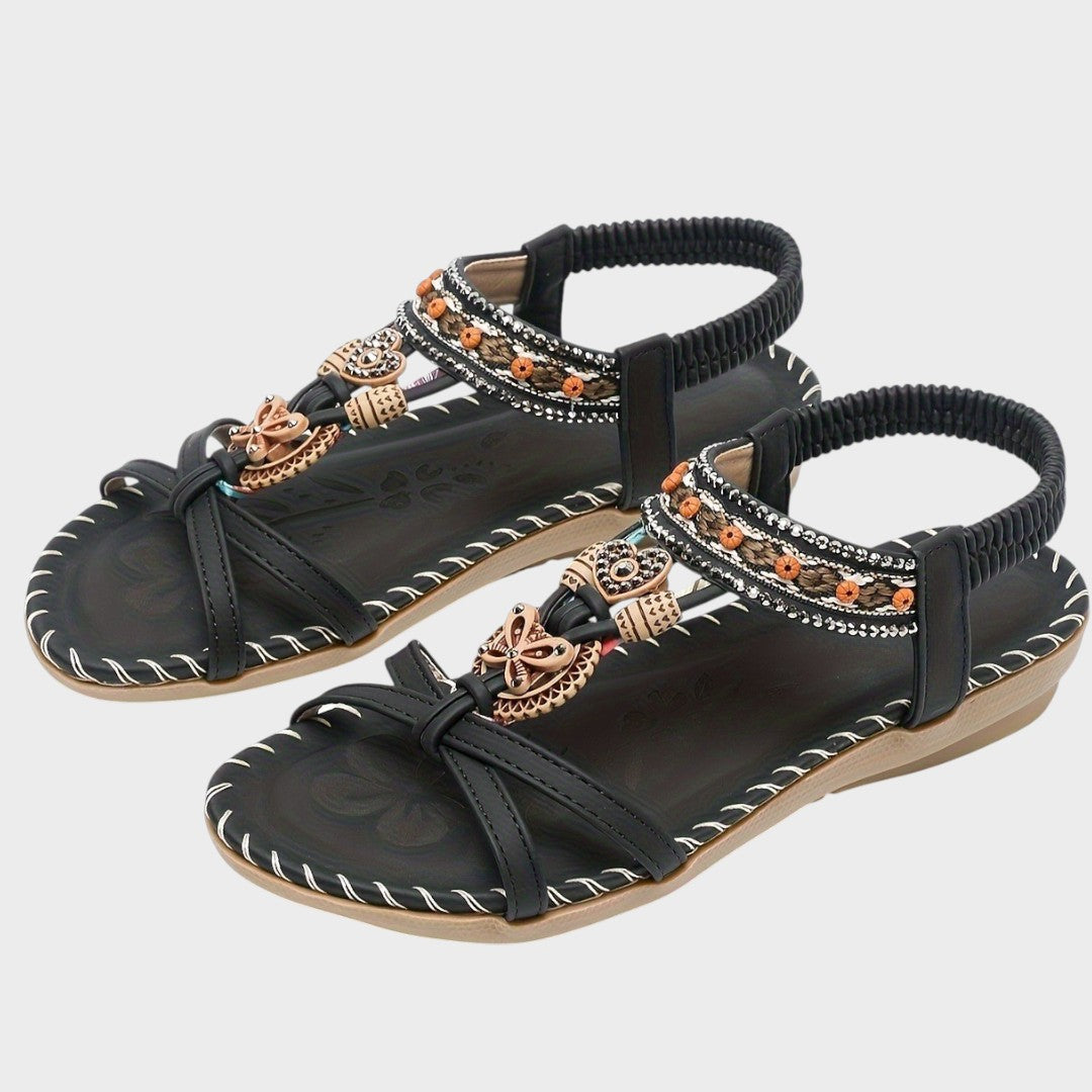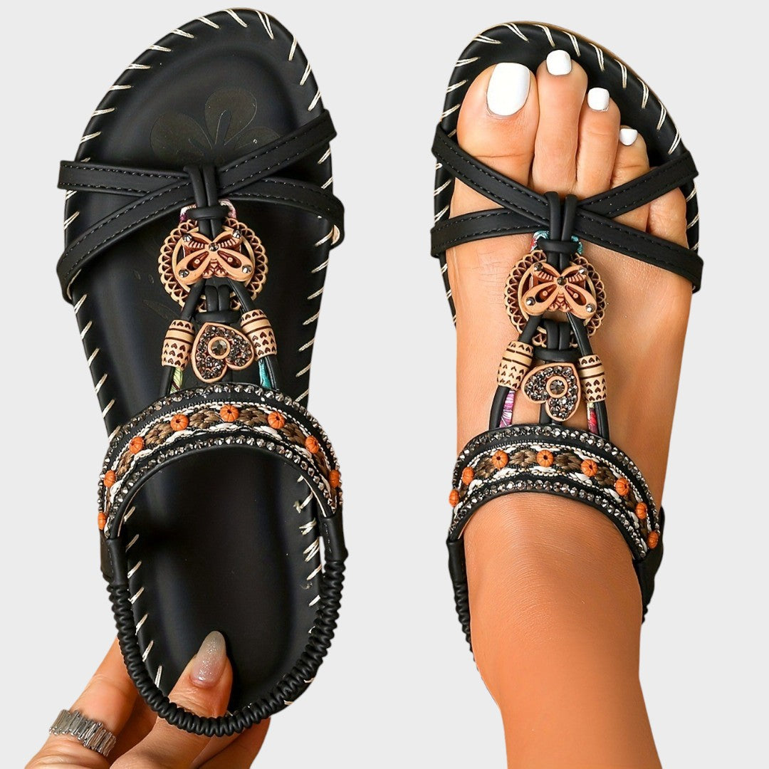 Eleva tu estilo con las sandalias Ria, una combinación perfecta de comodidad y elegancia. Diseñadas para mujeres que buscan sujeción sin renunciar al estilo, estas sandalias cuentan con una suela acolchada para ofrecer comodidad durante todo el día. Los detalles de pedrería añaden un acento sofisticado para combinar con cualquier look. Ideales tanto para salidas informales como para eventos especiales.