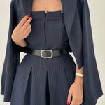 Con un pantalón amplio y moderno, un corsé estructurado y una chaqueta fluida a juego, ha sido diseñado para realzar cualquier silueta.