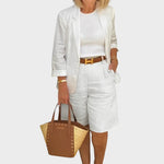 • Conjunto de dos piezas - Blazer con mangas ¾ y pantalón corto de cintura alta con bolsillos laterales.