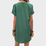 Este vestido ligero, versátil y supercómodo está diseñado para acompañarte en cualquier ocasión. Su corte holgado y elegante favorece el cuerpo sin restringirlo. Ideal para llevar a diario cuando quieras vestir un poco más suelta.
