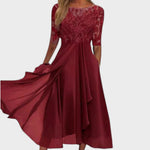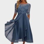 Gabhi es el vestido midi que acompaña con estilo a cualquier mujer, con su delicado encaje, su elegante corte y su fluidez. Perfecto para bodas, cenas o ocasiones especiales: femenino, elegante y cómodo.