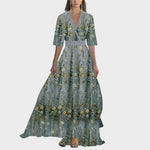 Haz una declaración de estilo con el vestido Helena, una pieza esencial para la mujer moderna que busca elegancia y practicidad. El precioso estampado floral da vida a tu look, mientras que el escote en pico acentúa de forma natural tu silueta. Confeccionado en un lujoso tejido vaporoso, este vestido largo te llevará de la mañana a la noche con comodidad y sofisticación.