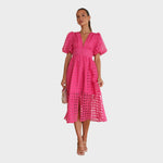 Met uitlopende mouwen en een charmant midi-model is deze jurk gemaakt voor wie van stijl met attitude houdt. De lichtgewicht stof met ruitpatroon voegt een moderne, gedurfde touch toe, terwijl de levendige kleur alle aandacht trekt - perfect voor feestjes, vakanties of dagen waarop je gewoon wilt schitteren.