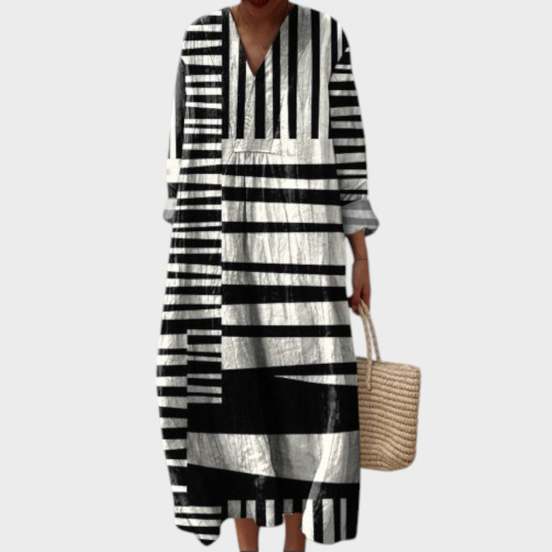Descubre la fusión perfecta de arte y elegancia con el vestido geométrico Ottilie. Su diseño moderno se fusiona con un encanto atemporal a través de patrones cautivadores.
