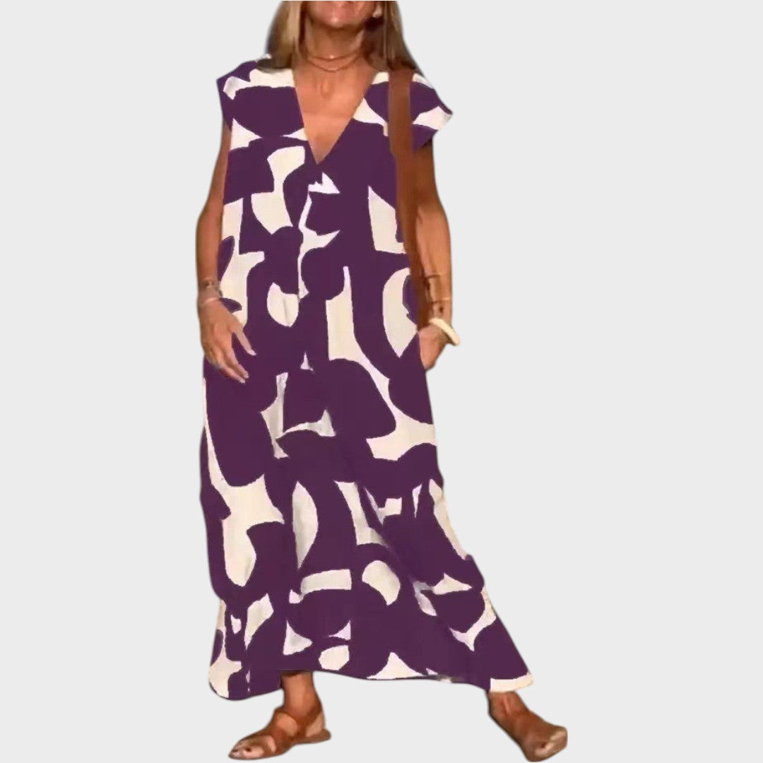 El vestido Mebelle es la elección ideal para quienes valoran la comodidad sin renunciar al estilo. Está confeccionado en un material ligero y transpirable y tiene un corte holgado que sigue el cuerpo con fluidez, perfecto para los días cálidos. El escote en pico alarga la silueta, mientras que el estampado gráfico en blanco y negro crea una estética contemporánea y atrevida.