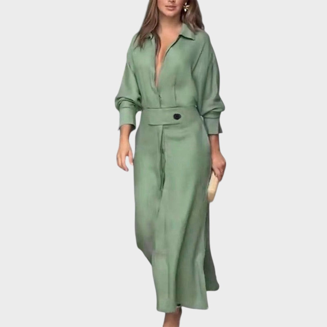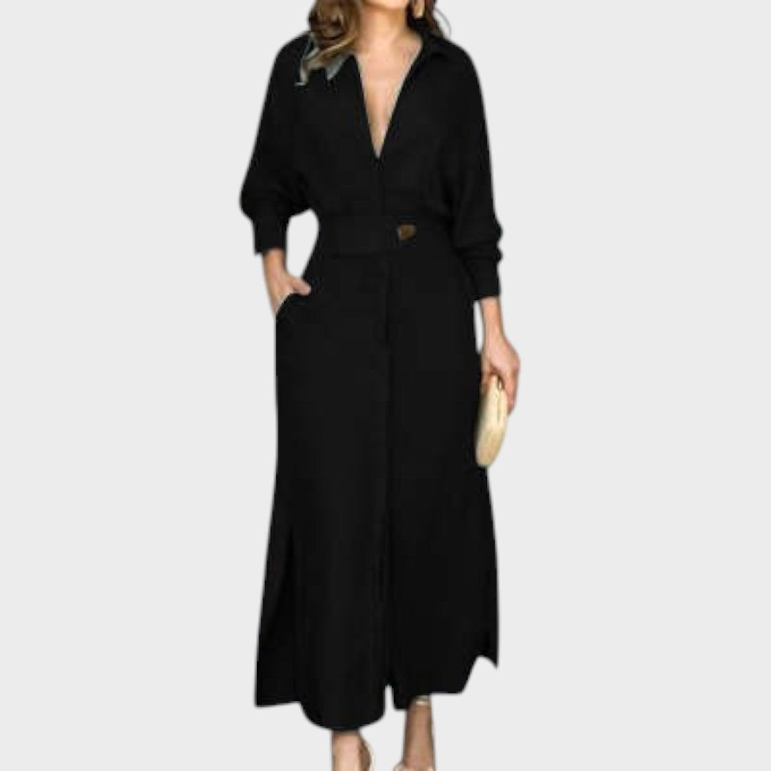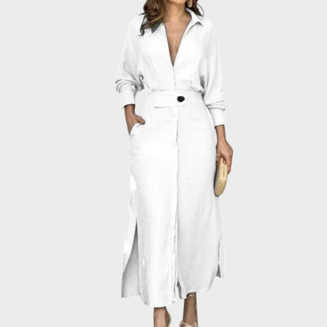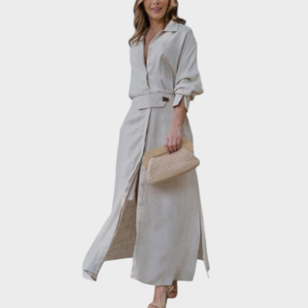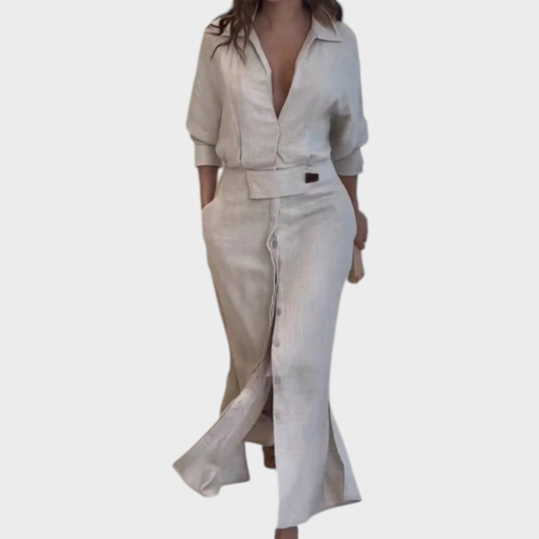Jeanette | Vestido Largo de Lino Con Escote En V
