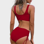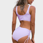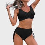 • Ajuste Favorecedor - El top cruzado sujeta y realza el escote de forma natural, mientras que la braguita de tiro alto realza la cintura y crea una silueta hermosa. Los cordones laterales ajustables aportan un toque divertido y control al ajuste.